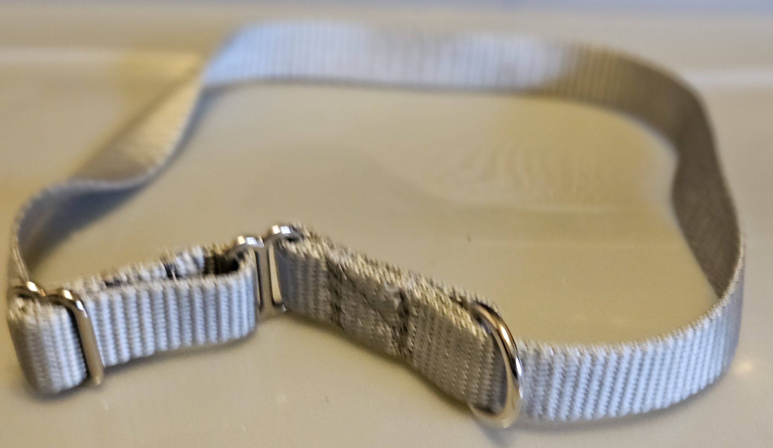The Klondike collar forms a complete circle around the neck—secure, but without chafing or choking the dog.