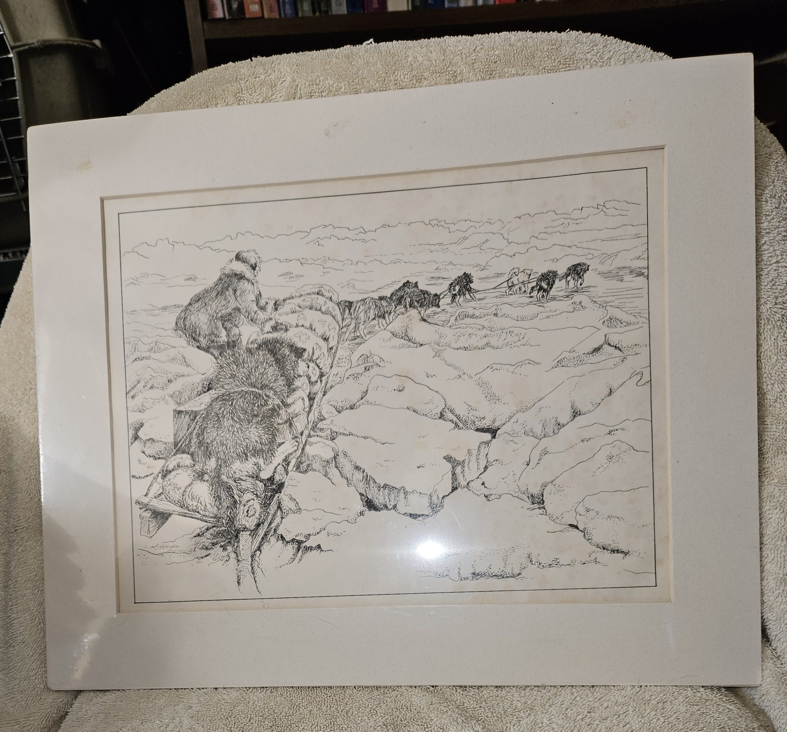 This is a line drawing by Edith Ivory-matted. The mat size is 13×16 with the image 9-1/2×12. Not signed.